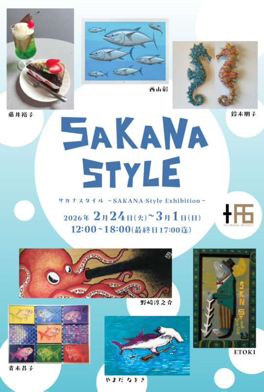 様々なスタイルに変容する「サカナ」を7人の作家が独⾃の感性で表現する展示です。 参加作家 ⻘⽊昌⼦ ETOKI 鈴⽊朋⼦ ⻄⼭彰 野崎淳之介 ⾷品サンプルアーティスト 藤井裕⼦ やまだ なをき