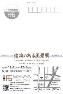 建物はただの構造物ではなく、風景の一部として、あるいは風景を変容させる存在として、人の営み・時間・記憶を内包する。今展では「建物のある風景」を多様な視点(写実・抽象・記憶・再構成・人との関係性など)から提示。閲覧者に「風景のなかの建築」「建築がつくる風景」を参加アーティストによる作品群から再認識して頂く。