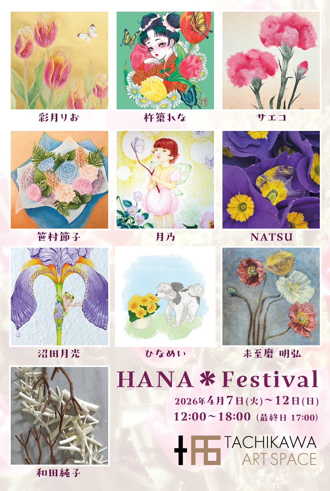 立川アートスペースでは「ギャラリーを花束に」をコンセプトに「花*ハナ*華」の企画展、HANA*Festival を開催します。